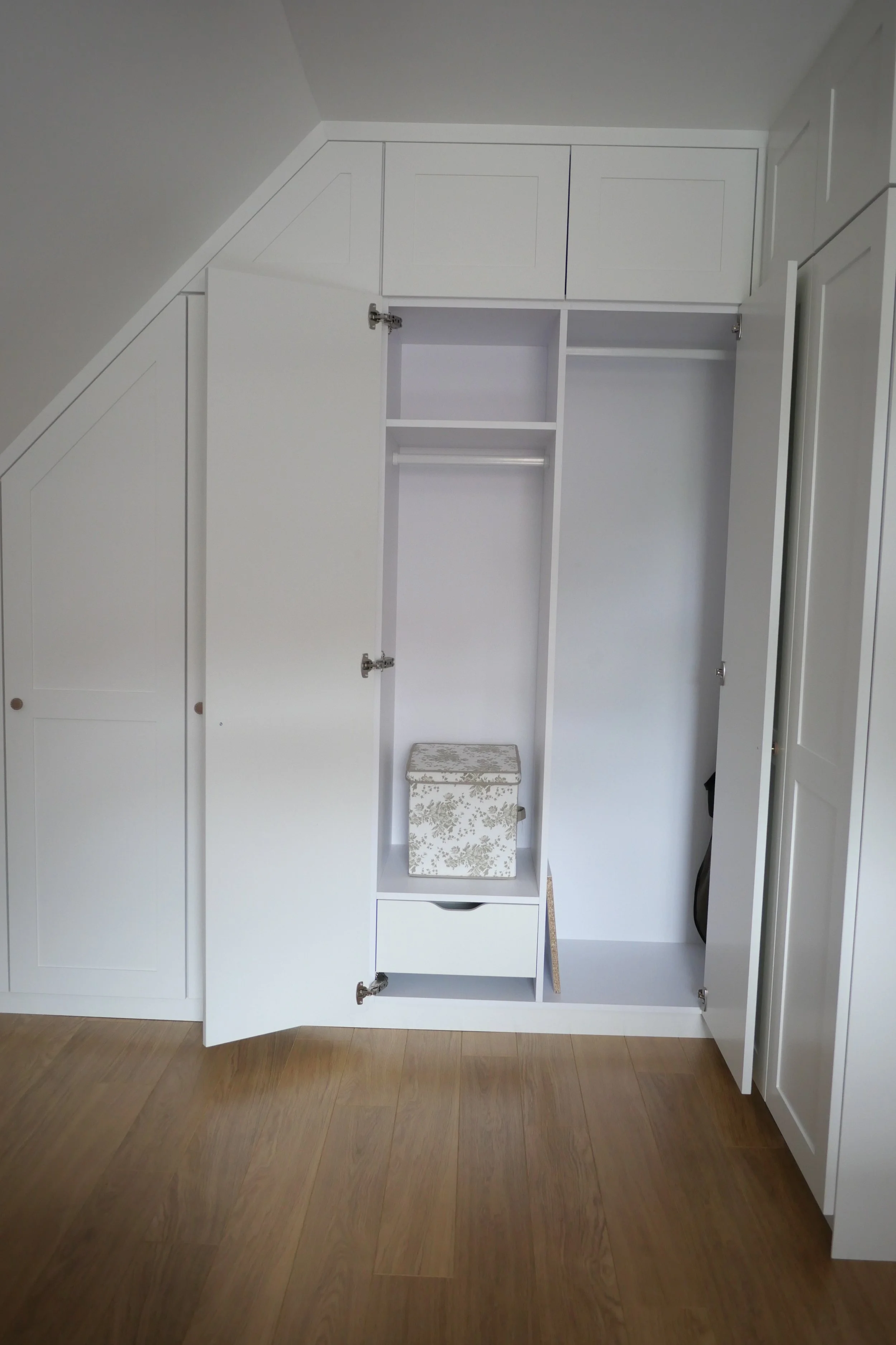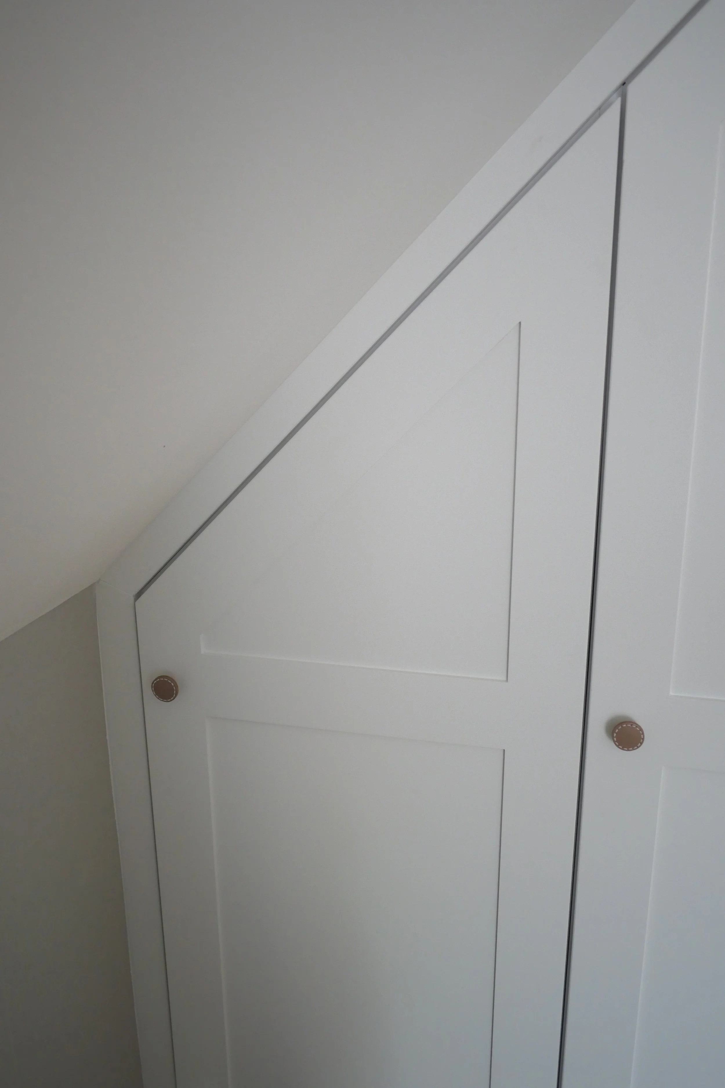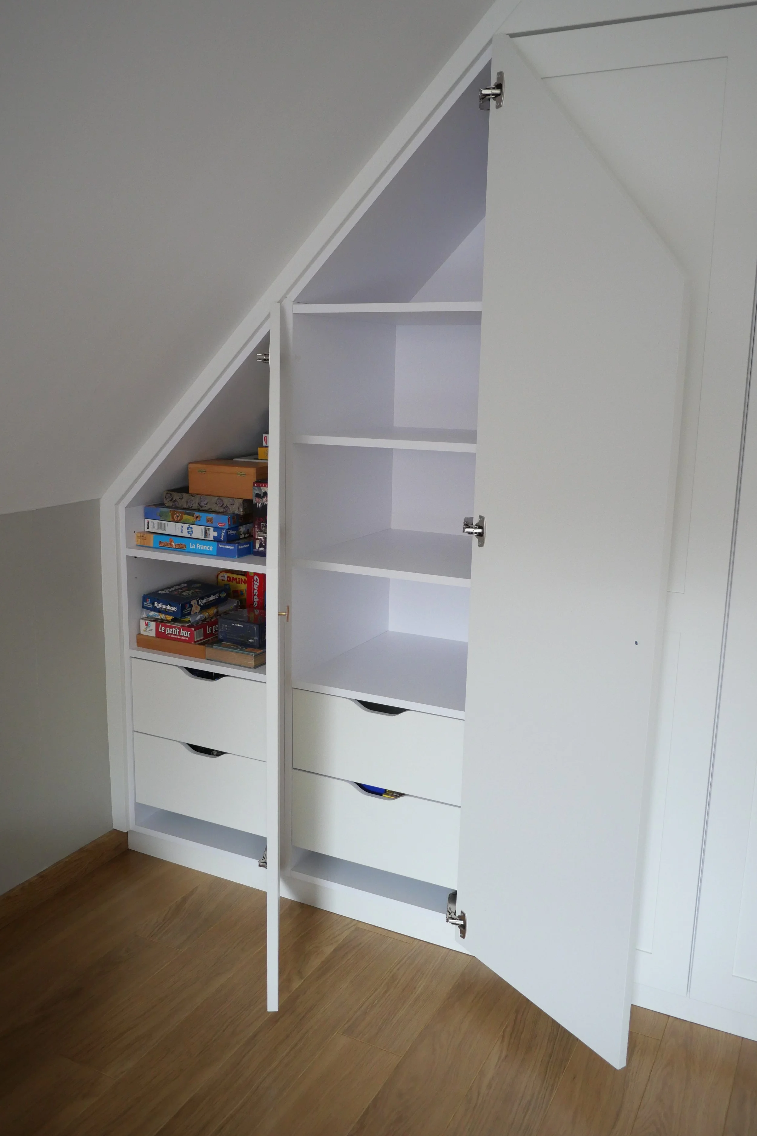 Agencement d’un dressing en angle et sous pente - Mélaminé blanc & MDF peint