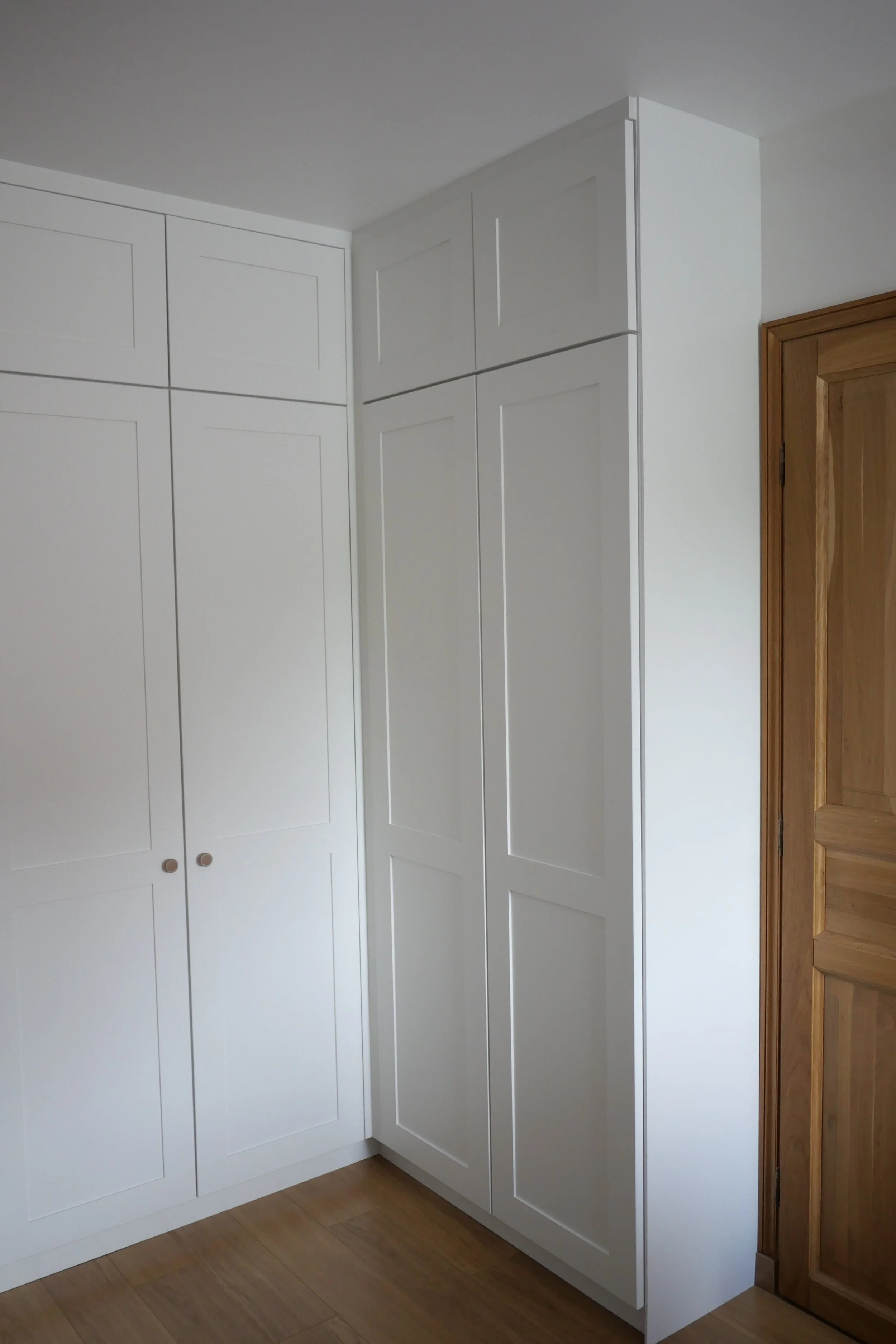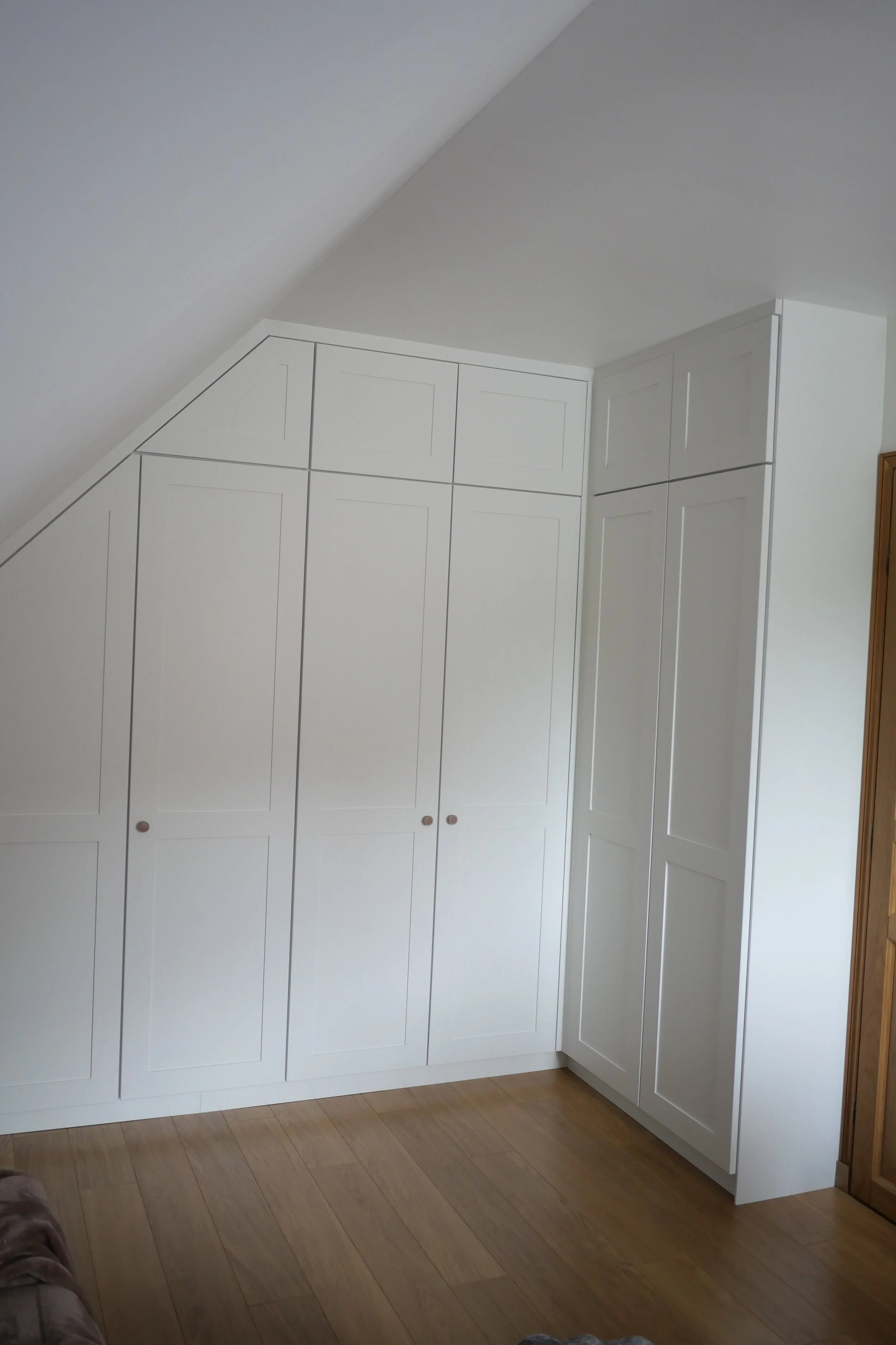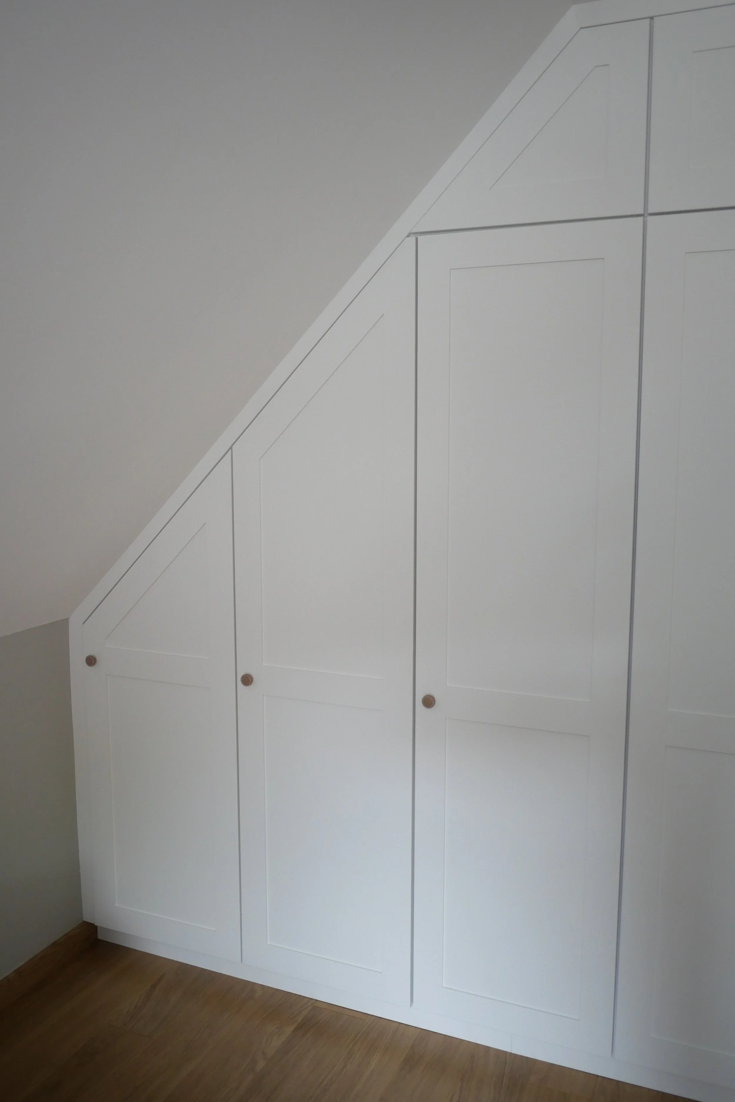 Agencement d’un dressing en angle et sous pente - Mélaminé blanc & MDF peint