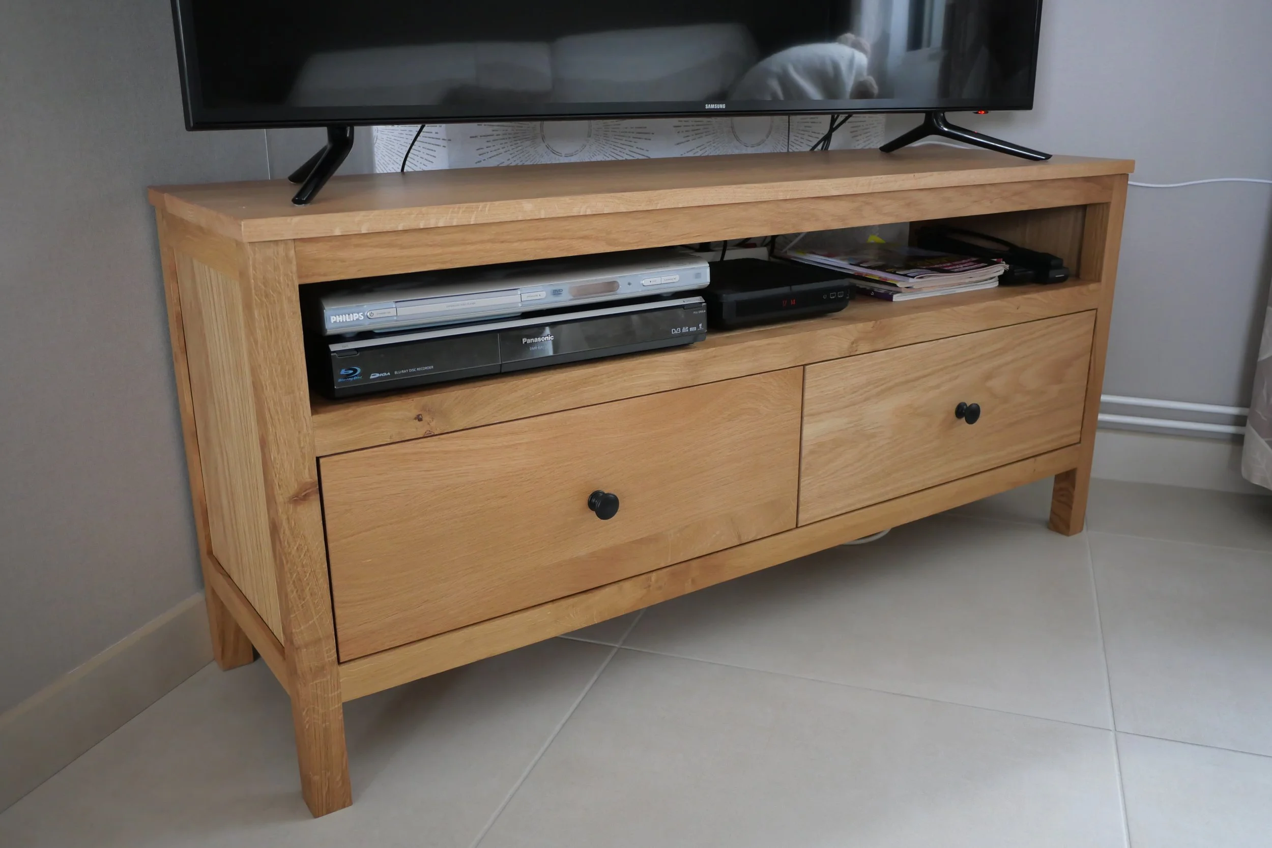 Dans le même projet, le client m’a également confié la réalisation d’un meuble en chêne massif, aux dimensions sur mesure, avec deux tiroirs et un design minimaliste, destiné à une autre pièce de la maison.
